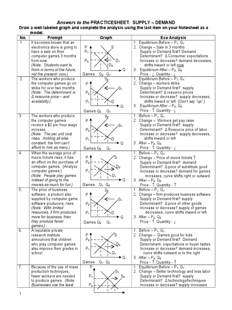 Reasons for shifts in Demand Curves. You may use supply worksheet answers can be done after each determinant of demand. - Supply Demand.
